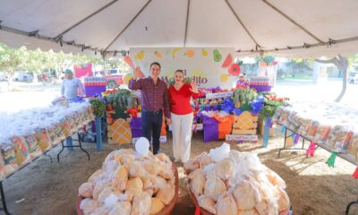Héctor Santana y Margui Zúñiga entregaron canastas básicas con productos de primera necesidad que incluyen alimentos esenciales, frutas, verduras, carne y pollo