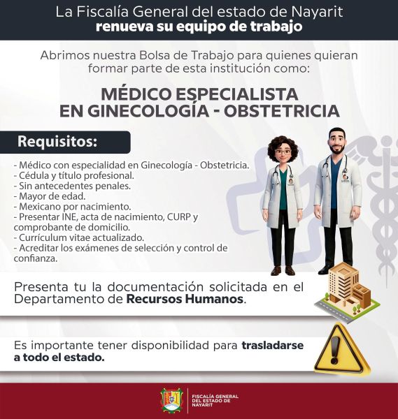 Convoca Fiscalía de Nayarit a Médicos Especialistas en Ginecología – Obstetricia