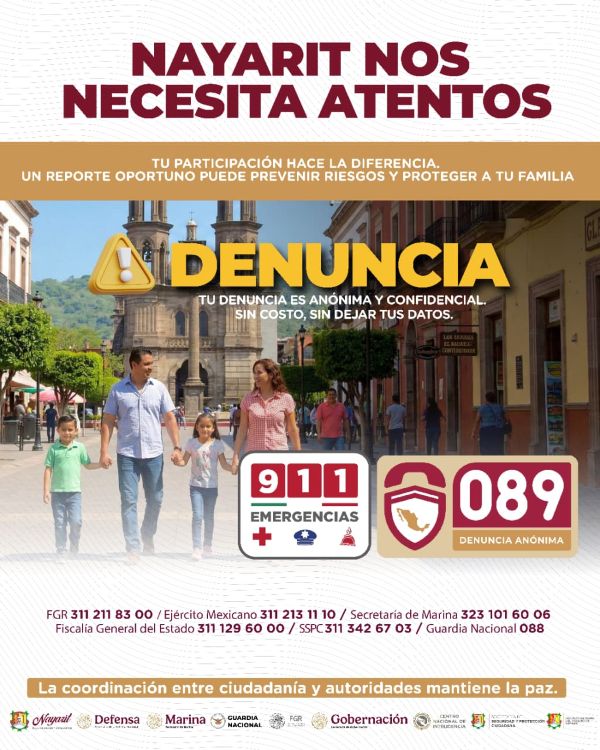 La denuncia es anónima, confidencial y sin costo. El Gobierno del Estado invita a la ciudadanía a utilizar el 089 o el 911 en caso de emergencia.