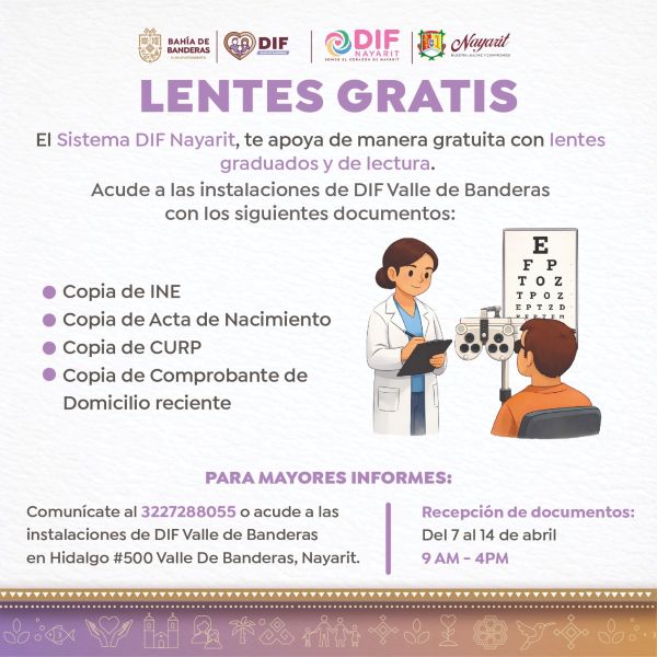 Interesados acudir a DIF Municipal en Valle de Banderas con documentación en copia: identificación oficial (INE), acta de nacimiento, CURP y comprobante de domicilio reciente.