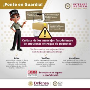La #GuardiaNacional pone a tu consideración estas recomendaciones para prevenir estafas argumentando la supuesta entrega pendiente de un paquete.